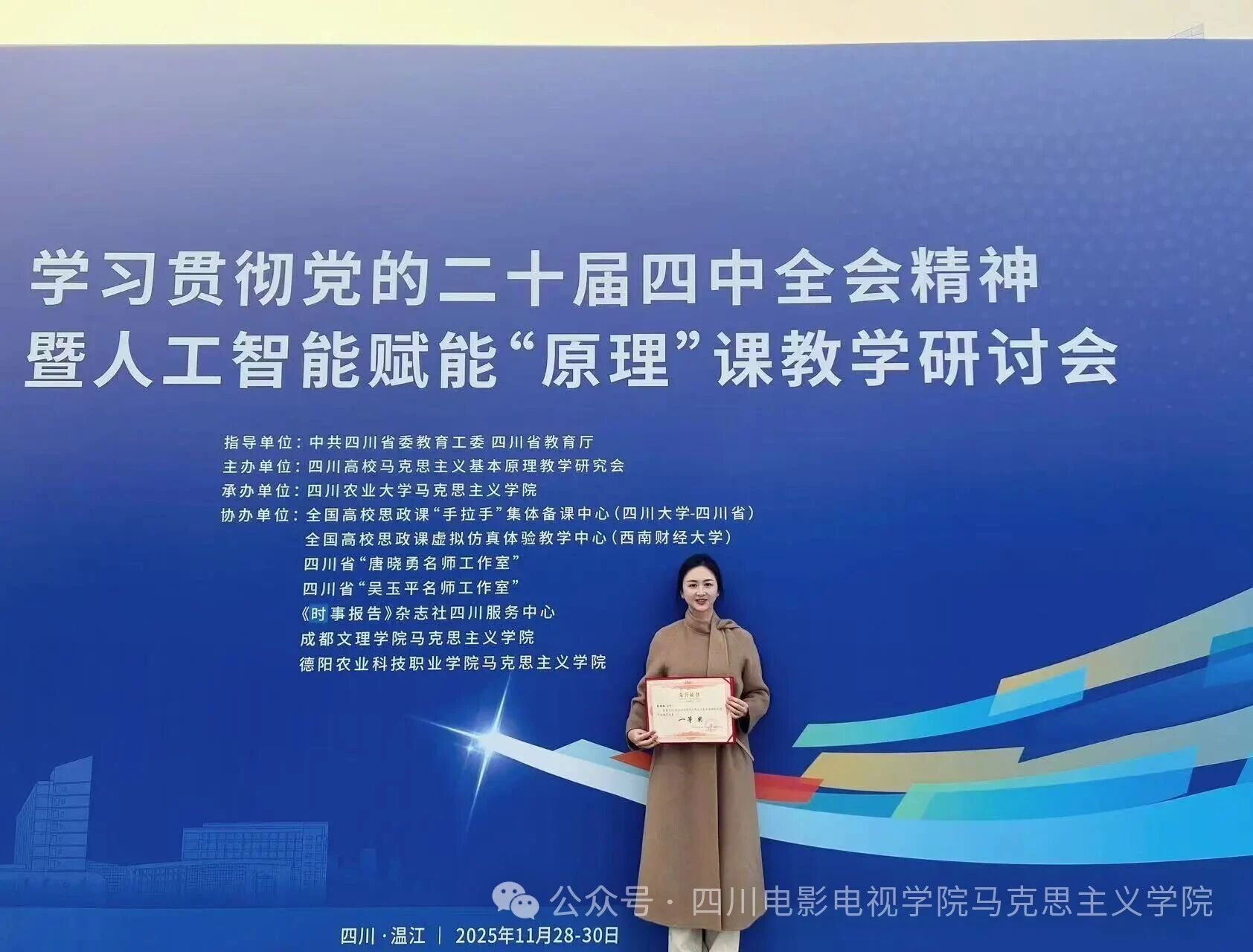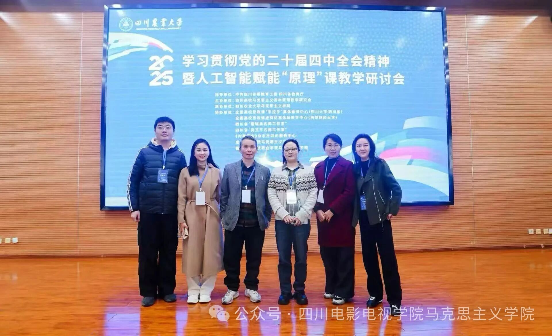 11月29日,学习贯彻党的二十届四中全会精神暨人工智能赋能“原理”课教学研讨会在四川农业大学召开,我校马克思主义学院选派六位骨干教师参会。此次参会是我校马克思主义学院紧跟教育数字化转型趋势、深化思政课教学改革的重要举措,旨在通过交流学习与经验借鉴,推动“原理”课教学与前沿科技深度融合。